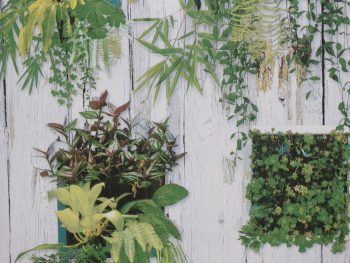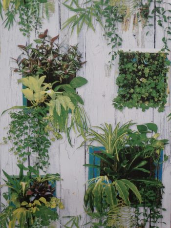 Tapeta ścienna W DESKI KWIATKI PAPROCIE DESKA